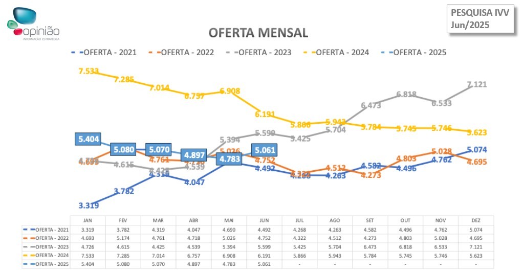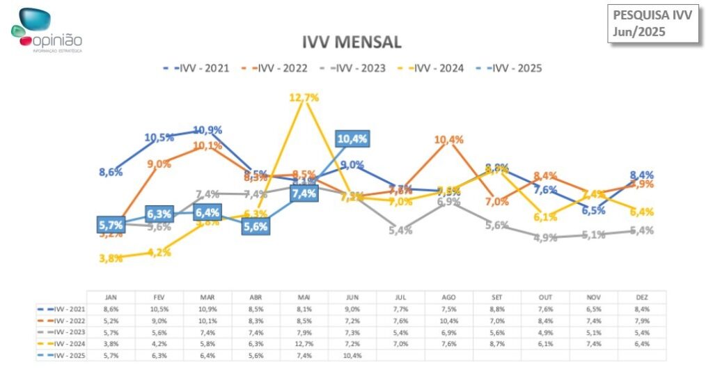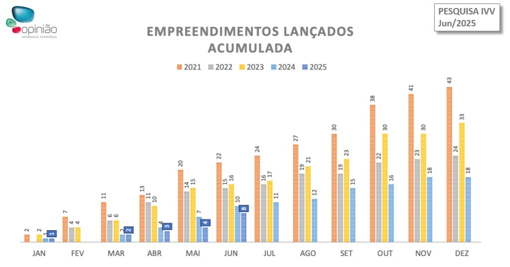 O mercado imobiliário do Distrito Federal segue respondendo de forma positiva à conjuntura econômica do país, que ainda apresenta um cenário de juros altos e incertezas fiscais. É o que aponta a pesquisa Índice de Velocidade de Vendas (IVV) de junho, que revela um indicador de 10,4%, e registrou a venda de 528 unidades novas e o lançamento de outras 456. Ao longo do mês, a oferta de imóveis novos aumentou no comparativo a maio, chegando ao acumulado de 5.061 unidades. Foram lançados quatro empreendimentos: dois em Águas Claras, um no Sudoeste e um no Park Sul.