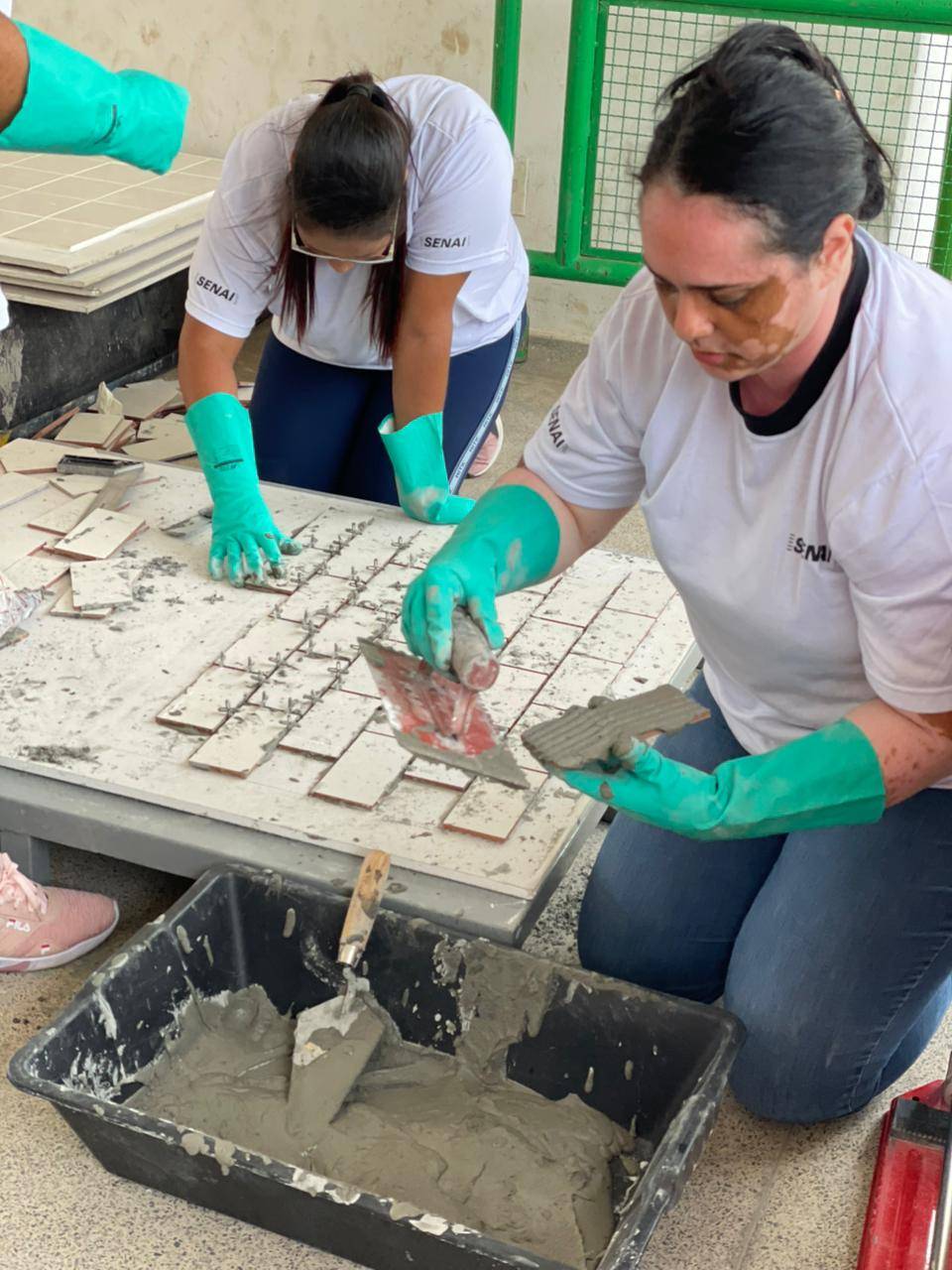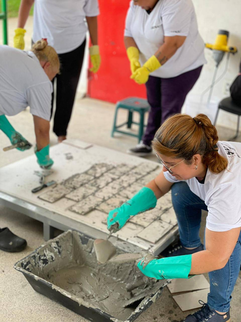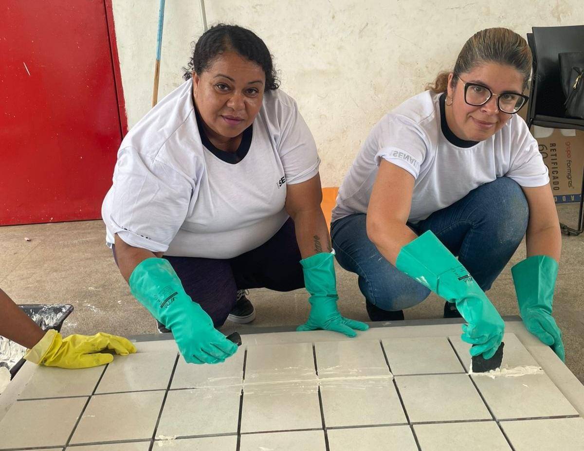 Durante a formação, as mulheres tiveram a oportunidade de aprender sobre os tipos de rejuntes existentes e suas funções, além de receber dicas de como realizar o preparo e a aplicação desses materiais na obra.
