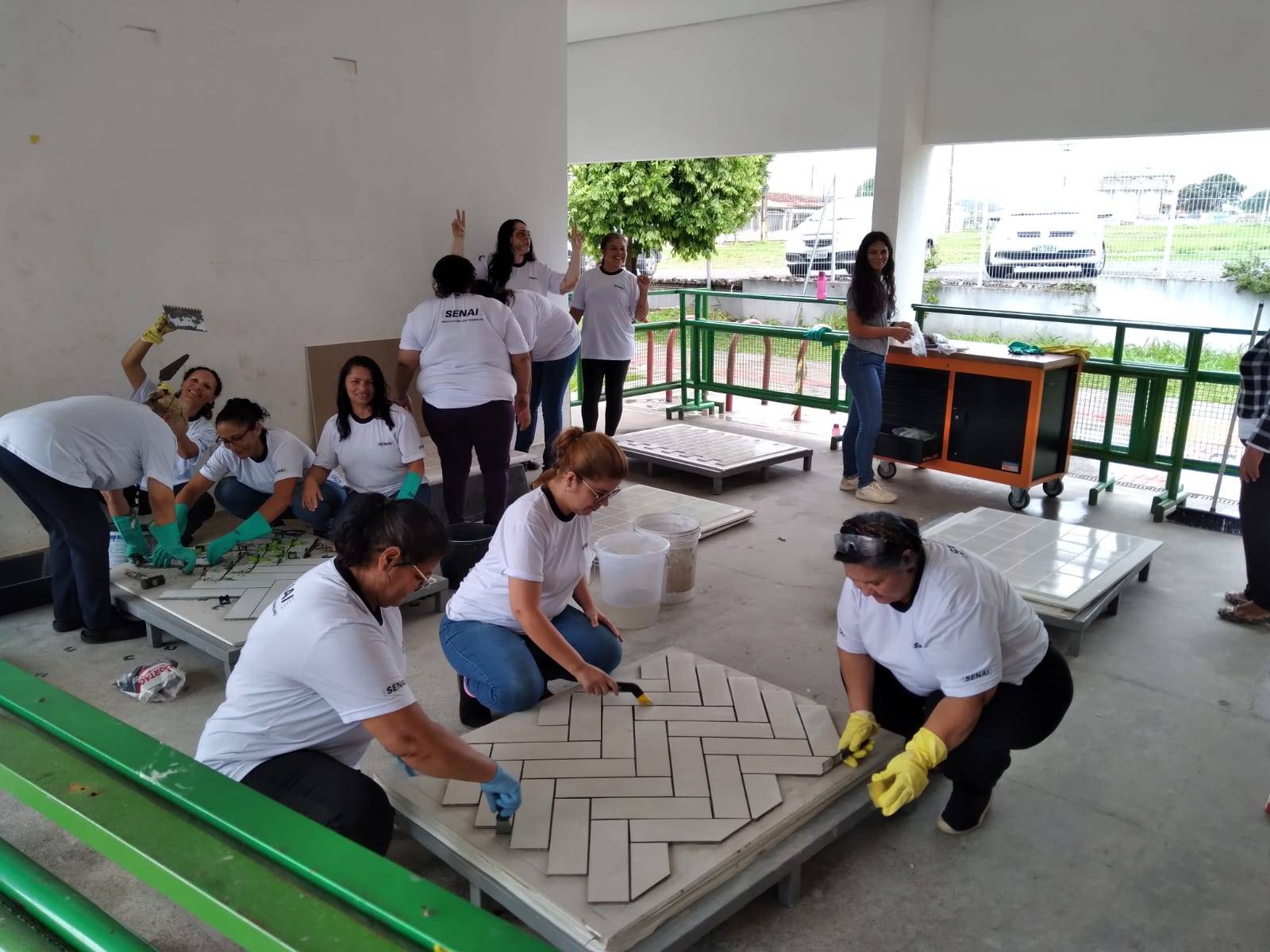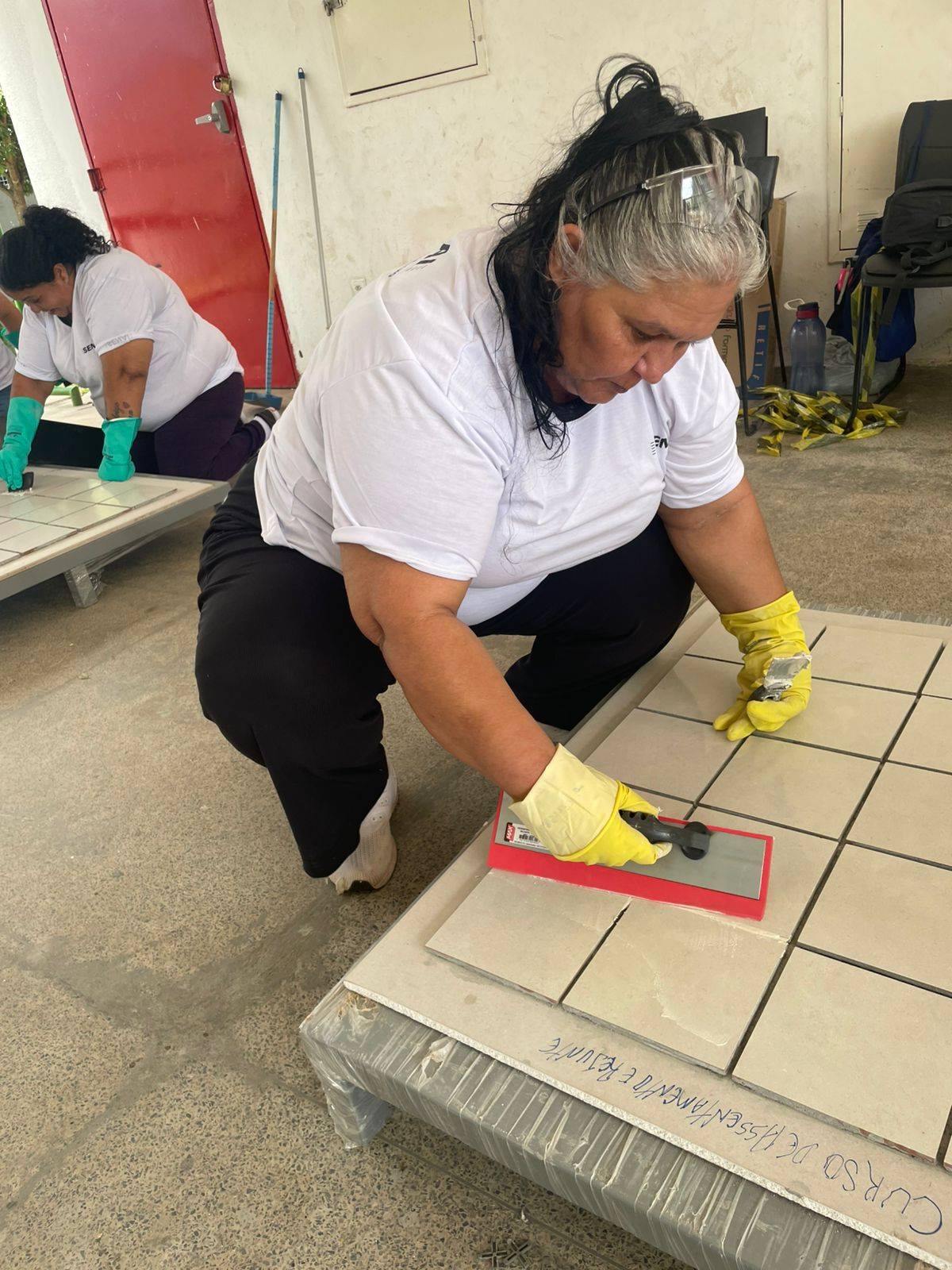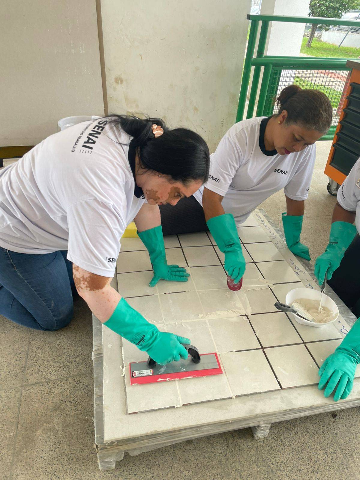 Durante a formação, as mulheres tiveram a oportunidade de aprender sobre os tipos de rejuntes existentes e suas funções, além de receber dicas de como realizar o preparo e a aplicação desses materiais na obra.